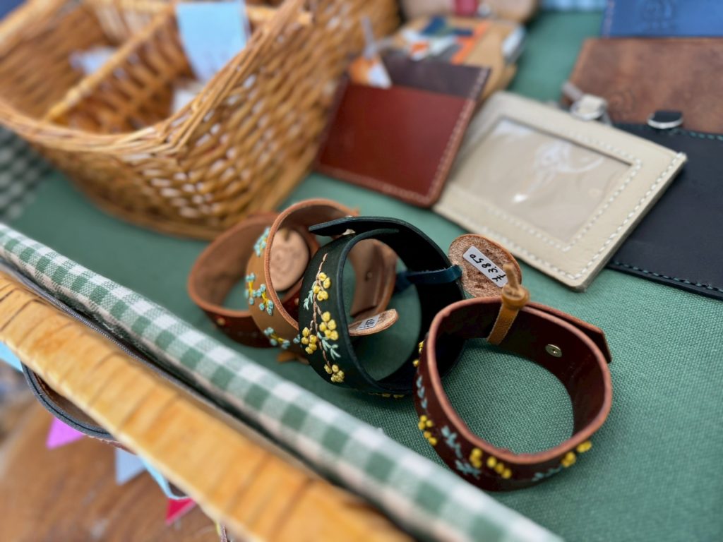 革にひとつひとつ手作業で模様や色を加えた、ナチュラルで温かみのあるアクセサリーたち。